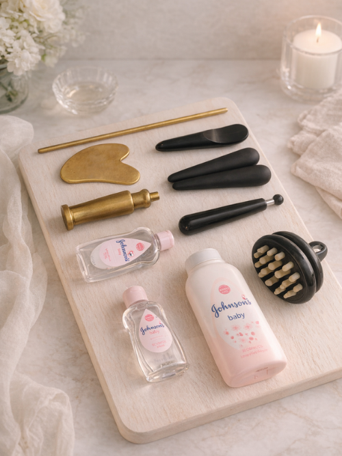 오일 또는 허브 제품과 함께 괄사 도구를 사용하여 피부 표면을 자극하고 마사지와 병행하는 방법입니다.