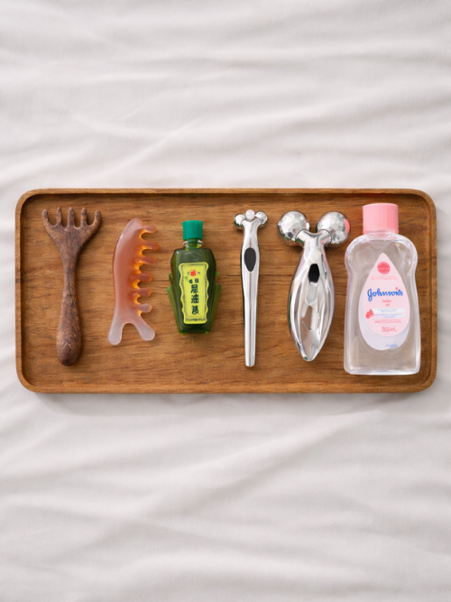 오일 또는 허브 제품과 함께 괄사 도구를 사용하여 피부 표면을 자극하고 마사지와 병행하는 방법입니다.