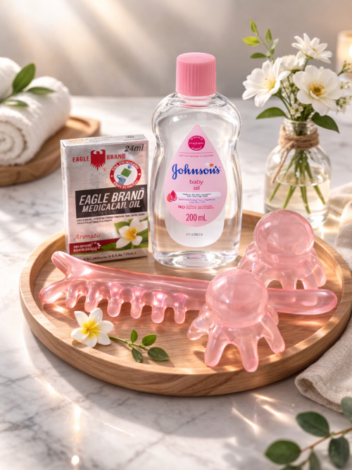 오일 또는 허브 제품과 함께 괄사 도구를 사용하여 피부 표면을 자극하고 마사지와 병행하는 방법입니다.
